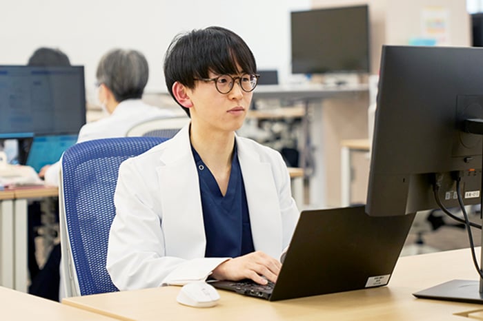 組織の特定のタンパク質を可視化し、様々ながんの種類の特定を行う「分子診断薬」の生産管理業務に携わっています。分子診断薬ユニットは、いくつかの担当に分かれていますが、私は様々な試薬を混合・撹拌し、ボトル容器への充填・閉塞を行う工程の管理をしています。分子診断薬は、対象となるがんの種類に合わせて非常に多品種であり、また製品ごとに原料、工程、製造量、注意点が異なります。そのため幅広い知識・ノウハウが必要であり、日々試行錯誤の連続です。最も大切にしていることは、いかに無駄なく最短時間で完成させるかという計画立案です。そのため現場では作業者や上司と進捗を確認し、その日の状況に合わせて製造予定の変更や最終判断を行い、最適な形で現場に指示を出すよう心がけています。
